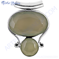 This exquisite pendant features a combination of 925 sterling silver and genuine chalcedony gemstones. The pendant showcases an oval chalcedony and a smaller round chalcedony. The pendant is crafted with care and designed for durability and daily wear. This elegant piece is ideal for those seeking a touch of sophistication. The silver setting complements the stone's color. This chalcedony pendant is a perfect gift. Known for its subtle beauty, chalcedony is believed to bring harmony and balance. This pendant is a great addition to your jewelry collection.