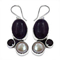 925 Silver Charoite & Pearl Drop Earrings for Women | Dangle Jewelry
