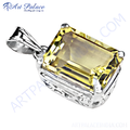 925 sterling silver pendant with an emerald-cut yellow citrine gemstone, suitable for women.