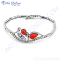 Silver bracelet with red coral gemstones. Elegant silver bracelet for women, perfect for gifting.