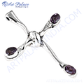 Silver Cross Pendant with Amethyst Gemstones | Women's Jewelry