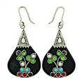 Silver Dangle Earrings with Black Onyx & Gemstones | Women's Jewelry