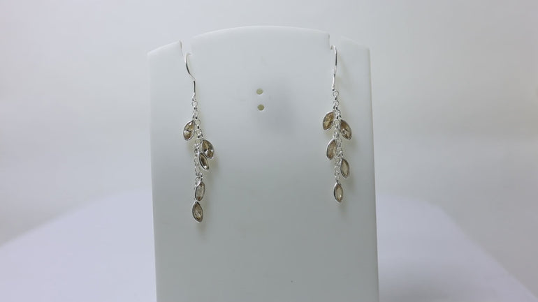 These elegant dangle earrings feature a delicate design. Crafted from high-quality silver, these earrings showcase cascading brown gemstones. The earrings are designed for a comfortable fit, ideal for everyday wear. The gemstones add a touch of sparkle. These earrings are a timeless addition to any jewelry collection. The secure hooks ensure a reliable wear. These versatile earrings are perfect for adding elegance to any outfit. The earrings are made with care and attention to detail, perfect for daily wear or gifting.