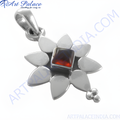 925 Silver Flower Pendant with Garnet Stone | Women's Jewelry