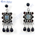 925 Silver Garnet & Iolite Drop Earrings for Women | Gift