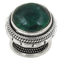 This exquisite ring features a vibrant green gemstone set in a 925 sterling silver band. The ring showcases a bold design with a unique braided rope-style detailing around the bezel. Crafted from hypoallergenic materials, this ring is suitable for sensitive skin and offers lasting durability. Ideal for adding a touch of elegance to any outfit, this ring is perfect for both daily wear and special occasions. This statement ring is a beautiful piece to add to your collection and is an excellent gift option.