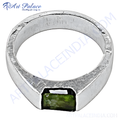Silver Ring with Green Gemstone | Men's Fashion Jewelry