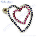 925 Silver Heart Stud Earrings with Ruby & Sapphire | Women's Jewelry