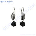 925 Silver Leaf Black Onyx Drop Earrings for Women