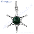 925 Sterling Silver Malachite Pendant | Starburst Design | Gift