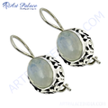 925 sterling silver dangle earrings with oval moonstone gemstone