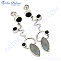 925 Silver Moonstone & Onyx Dangle Earrings for Women