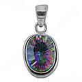 925 Silver Mystic Topaz Oval Pendant Necklace for Women