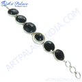 This exquisite bracelet is crafted from premium 925 sterling silver, ensuring durability and a brilliant shine. Featuring stunning oval-cut black onyx gemstones, the bracelet offers a bold and elegant statement. The secure clasp ensures a comfortable fit for daily wear. This bracelet is designed to be hypoallergenic, making it suitable for sensitive skin. This statement bracelet is an ideal accessory for special occasions and a perfect gift, offering timeless appeal. The intricate design and high-quality materials promise lasting wear.