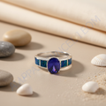925 Silver Oval Blue Gemstone Ring | Opal Inlay for Women