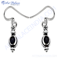 925 sterling silver drop earrings with an oval black gemstone in the center, perfect for daily wear.