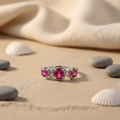 This exquisite ring features a trio of vibrant rubies set in a lustrous 925 sterling silver band. The rubies are securely prong-set, enhancing their natural brilliance and color. This ring is ideal for those seeking a touch of elegance and sophistication. The ring is made with high-quality materials, ensuring durability and a comfortable fit. The design is perfect for adding a pop of color to any outfit, making it suitable for daily wear or gifting. This stunning ring is a versatile addition to any jewelry collection.