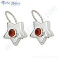 925 Silver Star Earrings with Red Gemstone | Women's Jewelry