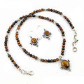 Tiger Eye Bead Necklace & Earrings Set | 925 Silver Jewelry