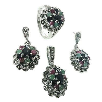 925 Silver Anklet with Red & Green Gemstones | Women's Jewelry