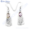 925 Silver Amethyst & CZ Dangle Earrings for Women | Gift