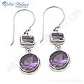 925 Silver Amethyst Drop Earrings | Purple Gemstone Jewelry