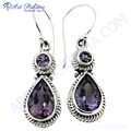 925 Silver Amethyst Drop Earrings for Women | Gemstone Jewelry