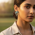 925 Silver Blue Gemstone Earrings for Women | Floral Jewelry