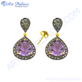 Amethyst Drop Earrings | Silver & Diamond Accent | Women's Jewelry