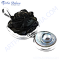 Sterling silver locket pendant with carved black onyx rose gemstone.