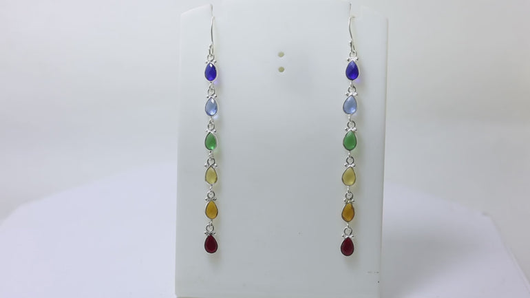 彩虹宝石水滴耳环 | 925纯银 | 女士款