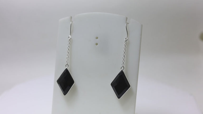 925纯银黑钻耳环,女士款 | 垂坠式耳环