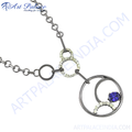 This exquisite necklace features a striking design crafted from premium 925 sterling silver. The necklace showcases a captivating blue sapphire gemstone, adding a touch of elegance. The intricate chain and pendant are meticulously detailed, ensuring a high-quality finish. This stunning piece is ideal for women seeking sophisticated jewelry. The necklace is designed for durability and comfort, making it suitable for daily wear. It's a perfect gift for special occasions or a beautiful addition to any jewelry collection. Its timeless design and high-quality materials guarantee lasting appeal.