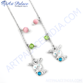 925 Silver Bunny Pendant Necklace | Pink & Green Gemstones