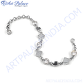 这款精美的手链设计精巧,镶嵌闪耀的立方氧化锆石,并饰以几何图案。手链采用优质银打造,既经久耐用又光泽奢华。安全可靠的搭扣确保佩戴舒适稳固,是日常佩戴的理想之选。这款手链经典百搭,可与任何服饰完美搭配,无论是休闲场合还是特殊场合都适宜。其百搭的特性也使其成为馈赠佳品。
