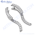 女士银色立方氧化锆弧形耳环 | 精致首饰