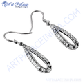 925纯银镶嵌立方氧化锆水滴形耳环(女士款)