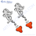 银色吊坠耳环,镶嵌红色宝石 | 女士珠宝礼物