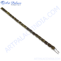 这款优雅的手链镶嵌着一串璀璨夺目的祖母绿切割宝石,并以坚固耐用的银质底座固定。手链采用优质银合金打造,兼具美观与耐用性。祖母绿切割宝石经过精湛的切割工艺,最大程度地展现其璀璨光芒,使其成为任何场合的吸睛配饰。这款手链设计舒适时尚,配有可靠的搭扣。它能为您的造型增添一丝精致优雅,是日常佩戴或馈赠亲友的理想之选。设计重点在于展现每颗祖母绿切割宝石的独特魅力,营造出和谐而惊艳的视觉效果。这款银质祖母绿手链必将成为您珠宝收藏中的珍品。
