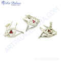 925 sterling silver fish earrings and pendant set with red ruby and white cubic zirconia accents