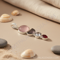 This exquisite pendant features a combination of gemstones set in a 925 sterling silver base. The pendant showcases a large, faceted pink stone, accented by a dark grey stone, a clear stone, and a red stone. Crafted from hypoallergenic, tarnish-resistant sterling silver, this pendant is designed for lasting wear. Its unique multi-stone design adds a touch of sophistication to any outfit, making it ideal for daily wear or gifting. This beautiful piece will complement any style.