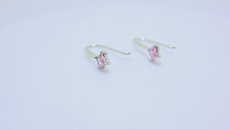 925纯银粉色方形宝石耳环,女士款 | 礼物