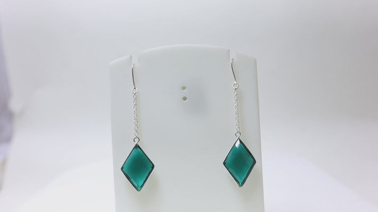 银色蓝绿色钻石水滴耳环(女士款)| 宝石首饰