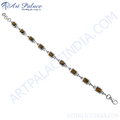 This elegant bracelet features genuine tiger eye gemstones set in a 925 sterling silver frame. The bracelet showcases rectangular tiger eye stones, each securely framed and linked. Crafted with high-quality sterling silver, this bracelet offers durability and a lasting shine. The secure clasp ensures comfortable and reliable wear. A timeless piece, it's ideal for daily wear or gifting. This bracelet is perfect for adding a touch of natural beauty to your look. It's a great example of gemstone jewelry and silver bracelet design.