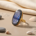 gold plating Oval Blue Gemstone Ring | Women's Fine Jewelry Gift