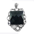 This elegant pendant showcases a faceted black onyx gemstone set in 925 sterling silver. The intricate silverwork adds a touch of sophistication to this piece. The pendant is crafted with a high-polish finish for enhanced shine and durability. It is lead-free, nickel-free, and hypoallergenic, making it suitable for sensitive skin. This versatile pendant is ideal for daily wear or gifting. The pendant features a classic design, perfect for adding a touch of elegance to any outfit. The dimensions of the pendant are provided in the product specifications. This pendant is suitable for any occasion.