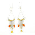 Silver Dangle Earrings with Yellow & Orange Gemstones for Women