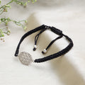Adjustable Black Cord Bracelet with Sterling Silver Flower of Life Charm